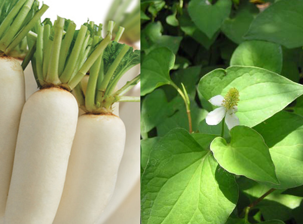 Để làm loại mặt nạ trị nám này, các bạn hãy lấy 1 nắm rau diếp cá và 1/2 củ cải trắng. Rửa sạch rau diếp cá và củ cải, sau đó cắt nhỏ rồi cho vào máy xay sinh tố xay nhuyễn mịn. Dùng rây lọc lấy nước cốt rồi thoa đều lên vùng da có nám và tàn nhang, nằm thư giãn tầm 20 phút rồi rửa lại với nước sạch.