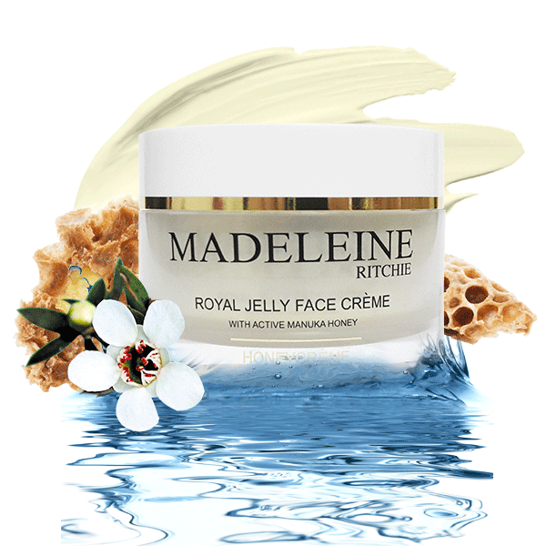 Thành phần của Madeleine Ritchie Royal Jelly Face Crème có chứa sữa ong chúa, mật ong Manuka. Theo kết quả nghiên cứu của các nhà khoa học, mật ong và sữa ong chúa có chứa đến 20 loại axit amin tự do như B1, B2, B6, PP..., sẽ cung cấp dưỡng chất nuôi dưỡng làn da tươi trẻ và khỏe mạnh từ bên trong, làm sáng vùng da tối màu, dưỡng sáng da và trì hoãn quá trình lão hóa da để chống nám và tàn nhang mới xâm nhập.