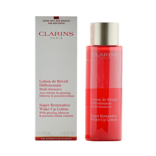 Clarins Super Restorative Wake-Up Lotion còn bổ sung thêm chiết xuất nhân sâm nhằm phục hồi làn da hư tổn, tái tạo sản sinh tế bào da mới, dưỡng ẩm, làm mờ vết thâm, giảm nhăn, cho làn da tràn đầy sức sống. Đồng thời, thành phần này còn khôi phục lượng nước hiệu quả cho da, thúc đẩy tái tạo tế bào da bằng cách tăng oxy cho các tế bào da, đào thải độc tố, làm da trắng và sáng mịn hơn.