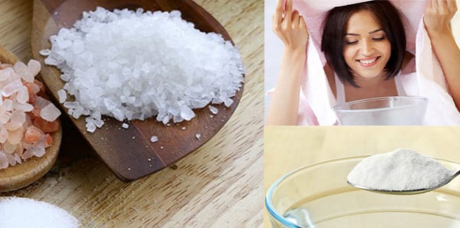 Các bạn lấy 300ml lít nước cho vào nồi và đun sôi, cho thêm 5 thìa lớn muối biển vào cho hòa tan hoàn toàn muối. Nhấc nồi nước xuống dùng khăn lớn trùm và hơ mặt với nước muối, lưu ý khoảng cách giữa mặt và mặt nước là 30cm để tránh tình trạng bỏng da mặt. Các bạn thực hiện xông từ 5 đến 7 phút rồi xả sạch mặt với nước mát.