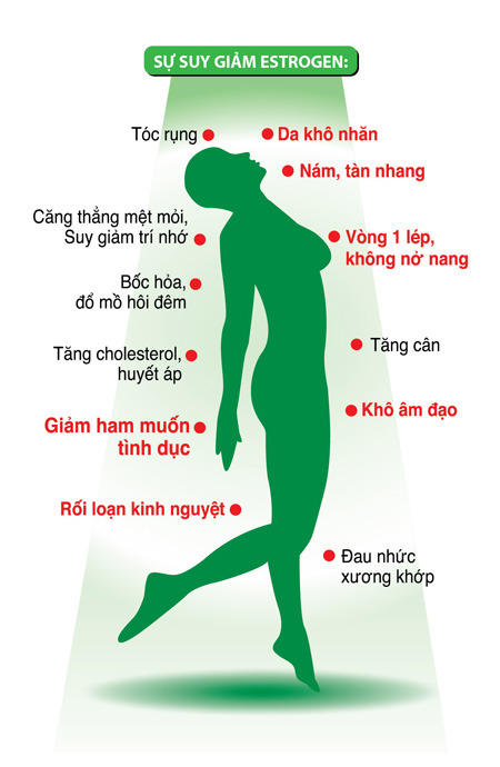 Thông thường, sự suy giảm estrogen gắn liền với thời kỳ tiền mãn kinh và mãn kinh ở phụ nữ. Theo các chuyên gia y tế, sau 35 tuổi thì nội tiết tố nữ estrogen sẽ giảm đi 15% sau mỗi 10 năm; đến 55 tuổi thì hàm lượng này chỉ còn khoảng 10% so với khi còn trẻ. Sau 30 tuổi, quá trình lão hóa trong cơ thể diễn ra rõ rệt và buồng trứng cũng không thoát khỏi quy luật tự nhiên này. Suy giảm hoạt động ở buồng trứng sẽ làm hạn chế sản sinh hàm lượng nội tiết tố nữ. Từ khoảng 45 – 55 tuổi, hầu hết phụ nữ phải đối mặt với giai đoạn mãn kinh khi buồng trứng ngừng rụng trứng vĩnh viễn và estrogen sụt giảm nghiêm trọng. Đây được xem là thời gian khủng hoảng tâm lý trầm trọng nhất của người phụ nữ. Sự suy giảm nội tiết tố không chỉ tác động tiêu cực đến sức khỏe, vẻ đẹp mà còn gây ảnh hưởng xấu đến tâm lý, đời sống, công việc và hạnh phúc của nữ giới.