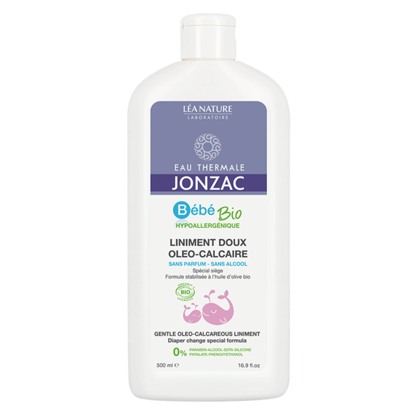 Eau Thermale Jonzac BébéBio Gentle Oleo-Calcareous Liniment có chứa dầu ô liu hữu cơ, giúp làm mềm da cho bé và làm dịu nhanh các vết mẩn đỏ trên vùng da mặc tã, giảm ngứa và làm dịu vùng da nhạy cảm của bé.