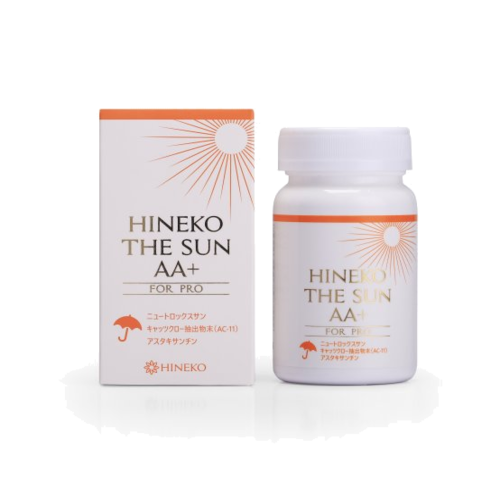 Viên uống chống nắng Hineko The Sun AA+ For Pro với thành phần có sự kết hợp giữa Nutrox Sun, Astaxathin, AC-11, lá ô liu,trái lựu, L-Cysteine , vỏ trái quýt , vitamin C-E-D... Sẽ bảo vệ da khỏi tia UVA và UVB từ ánh nắng mặt trời. Nhờ đó, ngăn cản hình thành hắc tố melanin để ngăn ngừa nám da và sạm da, chống lại các gốc tự do để chống lão hóa da.