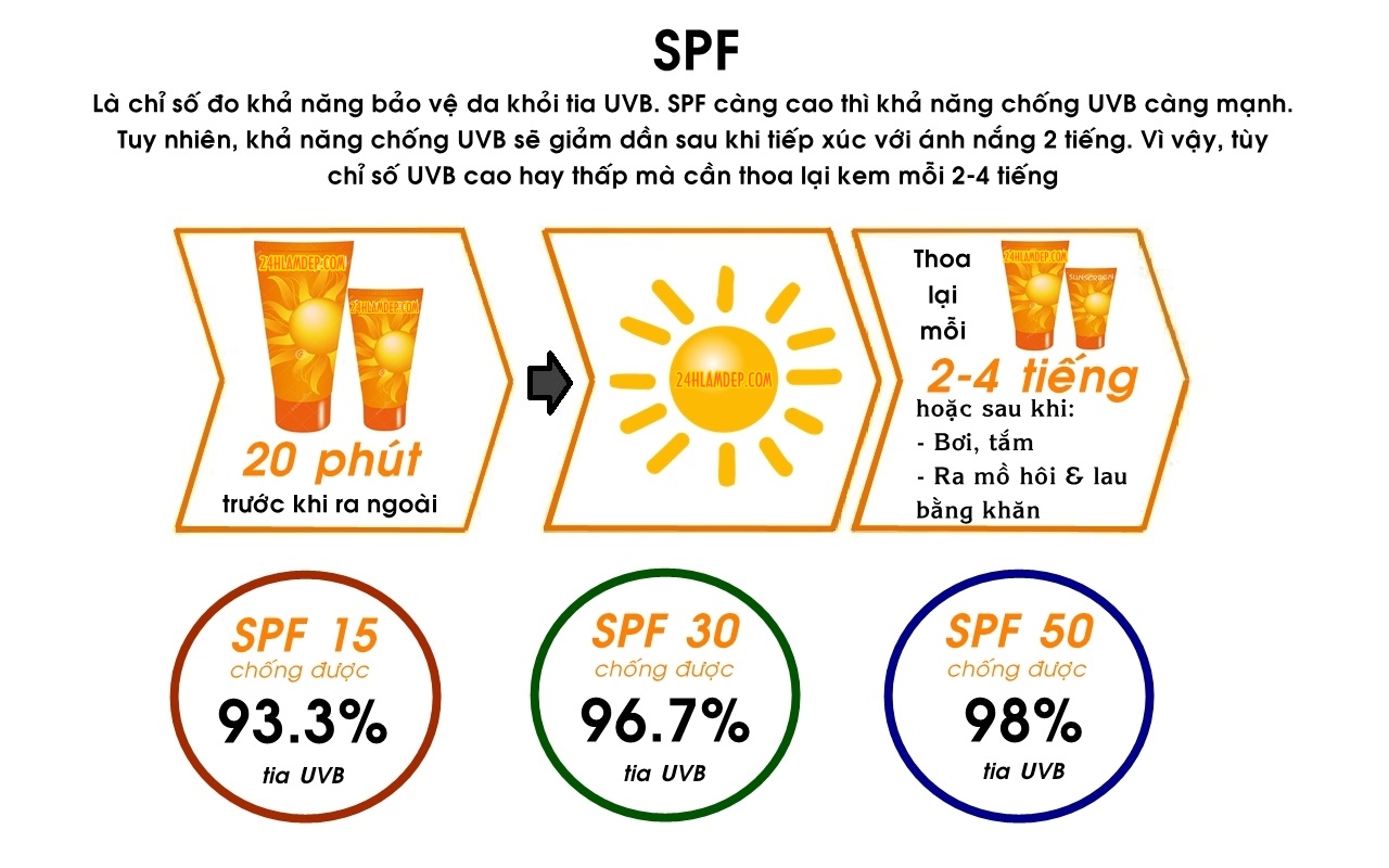 Cứ 1 SPF có thể bảo vệ làn da khỏi tia UVB khoảng 10 phút. Vì thế, lựa chọn kem chống nắng có chỉ số SPF cao nghĩa là bạn đang nâng cao thời gian bảo vệ làn da khỏi tia UV từ ánh nắng mặt trời.