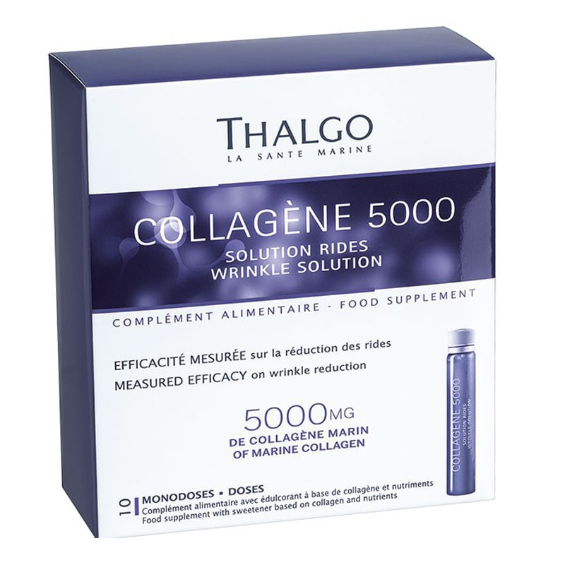 Nước uống tăng cường collagen Thalgo Collagen 5000 là gợi ý lý tưởng để cung cấp collagen cho da, định hình lại cấu trúc da săn chắc, chống nếp nhăn da. Sản phẩm thuộc quyền sở hữu của thương hiệu Thalgo Cosmetic S.A nổi tiếng đến từ Pháp.