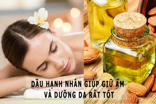 Nhờ hàm lượng vitamin E dồi dào, mà dầu hạnh nhân có thể giúp dưỡng ẩm cho làn da trở nên mềm mại, mịn màng và ẩm mượt hơn, từ đó sẽ khắc phục được tình trạng làn da thô ráp, sần sùi, bong tróc và nhăn nheo.