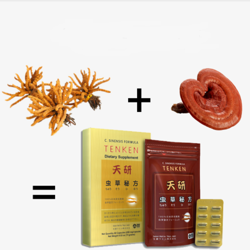 Đông trùng Hạ thảo Tenken là loại thực phẩm chức năng dạng bột đóng gói trong viên nang trong suốt dùng để uống trực tiếp. Sản phẩm được sản xuất dựa trên hai nguyên liệu là đông trùng hạ thảo và nấm linh chi, là hai loại thượng dược quý trong y học cổ truyền Trung Quốc, đã được Viện nghiên cứu Seiken Well Inc. của Nhật Bản nuôi trồng nhân tạo.