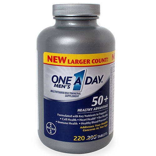 Vitamin tổng hợp One A Day Men’s 50+ là sản phẩm được tổng hợp từ các hoạt chất thiết yếu dành riêng cho quý ông từ lứa tuổi 50 trở lên, đã được Bộ Y tế Mỹ kiểm định kĩ lưỡng và các bác sĩ Mỹ khuyên dùng, nên rất an toàn cho sức khoẻ của các quý ông.