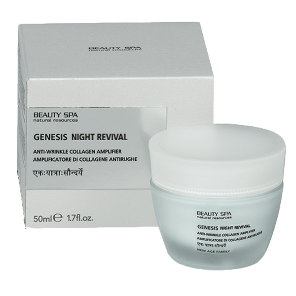 Kem chống lão hoá và tái tạo da ban đêm Beauty Spa Genesis Night Revival có chứa các thành phần nuôi dưỡng, tái tạo da chuyên sâu. Điển hình như matrixil 3000, trilagen, glucono delta-lacton, hỗn hợp biobalansiruyuschie và peptides, chiết xuất lá lô hội, đậu nành đã qua quá trình thủy phân và protein chiết xuất lúa mì.