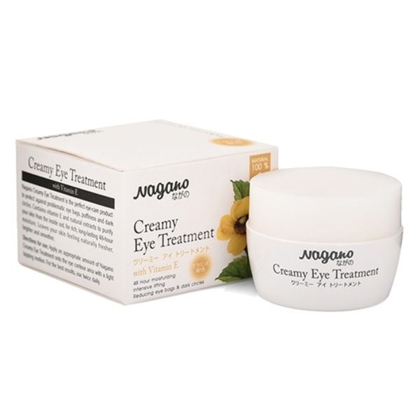 Kem trẻ hóa da vùng mắt Nagano Creamy Eye Treatment có chứa vitamin E, sẽ kích thích quá trình sản sinh collagen và elastin để khôi phục làn da đàn hồi và săn chắc, làm căng đầy các nếp nhăn và làm mờ vết chân chim hiệu quả. Bên cạnh đó, vitamin E còn thúc đẩy quá trình sản xuất các tế bào máu, kích thích lưu thông máu cho da hồng hào để giảm quầng thâm trên da vùng mắt.