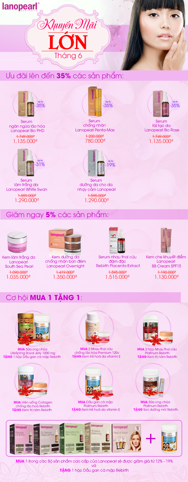 Danh mục sản phẩm được khuyến mãi tháng 6 của Lanopearl: