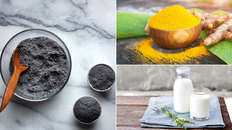 2.Mặt nạ trị mụn từ than hoạt tính, sữa tươi và bột nghệ