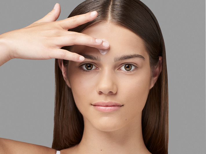 Thoa kem dưỡng ẩm cũng đơn giản và tiết kiệm thời gian, chỉ cần 1-2 phút là bạn thực hiện xong bước này. Đầu tiên, hãy lấy một lượng kem dưỡng ẩm phù hợp ra tay rồi chấm lên 5 điểm cơ bản trên khuôn mặt như trán – cằm – hai má – mũi. Sau đó, dùng các ngón tay tán kem ra và massage nhẹ nhàng cho kem thẩm thấu sâu vào trong.