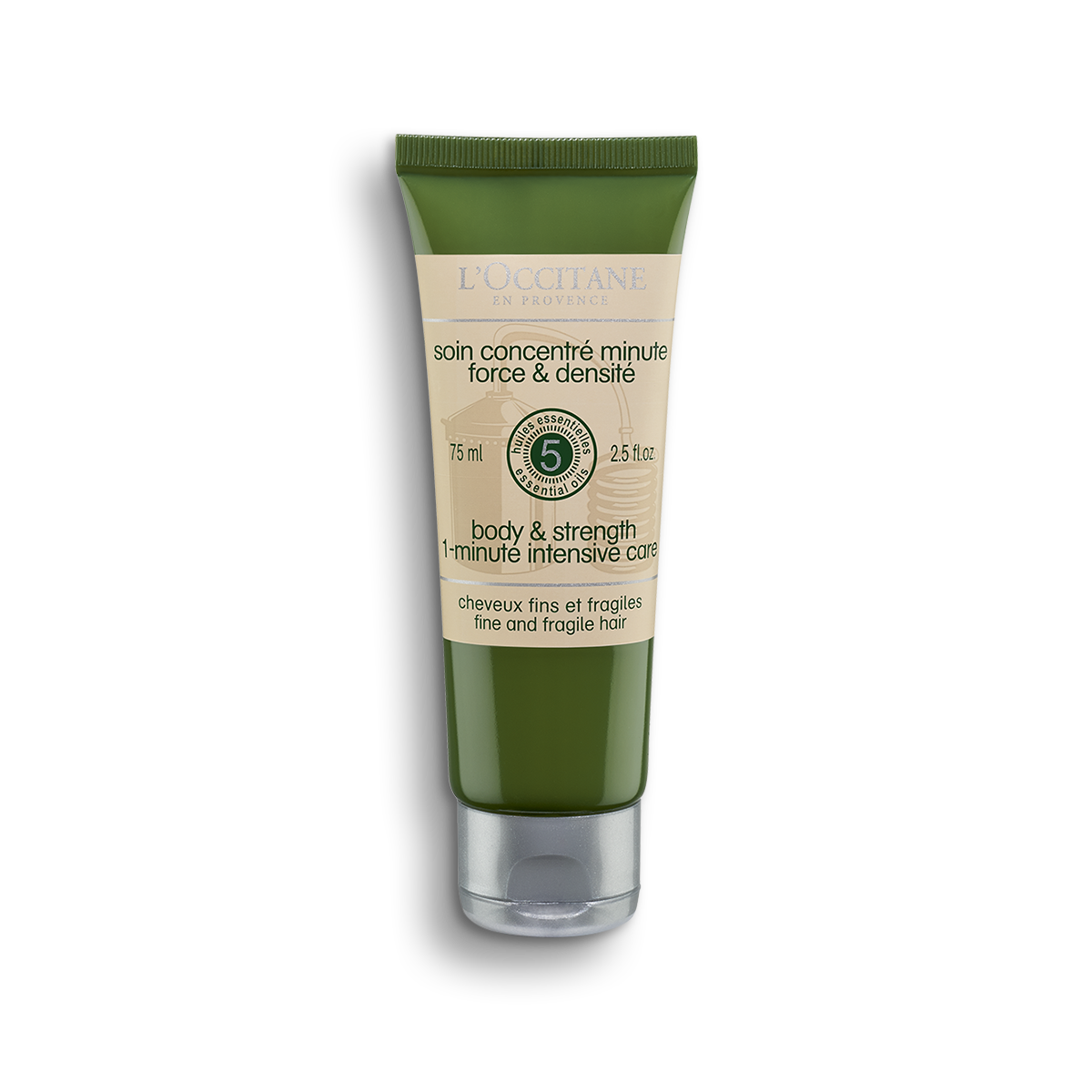 L'Occitane Body & Strength 1-Minute Intensive Care được bào chế với công thức có chứa tinh dầu hương thảo, bách tùng, hoàng lan, bách xù, tuyết tùng và axit amin... Sẽ cung cấp dưỡng chất thiết yếu cho tóc từ gốc đến ngọn, nuôi dưỡng chân tóc khỏe mạnh để ngăn chặn hiện tượng rụng tóc, dưỡng tóc bóng khỏe và mềm mượt từ trong ra ngoài. Đồng thời, tăng độ săn chắc và đàn hồi cho tóc để ngăn chặn hiện tượng đứt gãy tóc.