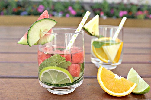 Cách thực hiện: Đầu tiên hãy rửa sạch dưa hấu, cam và lá bạc hà. Sau đó, dùng dao cắt cam và dưa hấu thành từng lát mỏng và cho vào bình thủy tinh. Đỏ 1 lít nước vào và cho thêm vài lá bạc hà vào, đậy nắp sau khoảng 3-4 tiếng là có thể uống được.