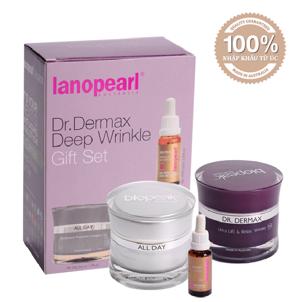 Lanopearl Dr. Dermax Deep Wrinkle Gift Set là bộ ba sản phẩm bao gồm serum, kem dưỡng ngày và đêm với công thức đặc chế dành riêng cho da lão hoá, làm mờ các nếp nhăn giúp da căng mịn chỉ sau 30 ngày sử dụng. Bộ sản phẩm được nhiều phụ nữ tin dùng và bình chọn là giải pháp hữu hiệu chống lão hoá cho làn da ở người trên 30 tuổi.