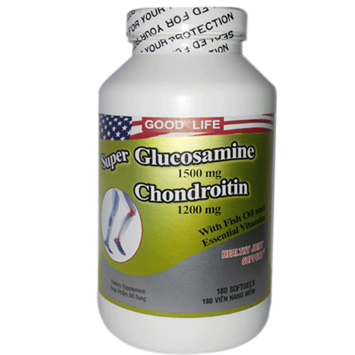 Super Glucosamine Chondroitin với sự kết hợp giữa glucosamine và chondroitin là hai thành phần thiết yếu của xương khớp, không chỉ giúp giảm đau, hỗ trợ điều trị viêm khớp mà còn giúp tái tạo lớp sụn và chất dịch nhờn giúp phục hồi tính linh hoạt của hệ thống xương khớp, cải thiện tình trạng viêm hay thoái hóa khớp. Super Glucosamine Chondroitin được tăng cường thêm vitamin C, vitamin E cùng tinh chất dầu cá là những thành phần dưỡng chất giúp hỗ trợ tối đa trong việc tăng cường chức năng xương khớp, thúc đẩy nhanh hóa trình tái tạo lớp sụn, chất nhờn bôi trơn cho xương khớp khỏe mạnh.