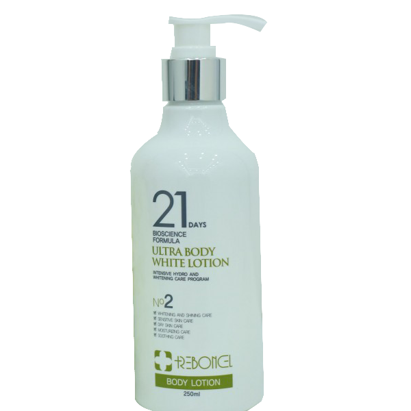 Dung dịch làm trắng da, dưỡng ẩm Ultra Body White Lotion cải thiện những làn da kém sắc, già nua với những đốm sạm nám, nhăn nheo trên bề mặt da, tăng cường dưỡng chất từ thiên nhiên nhằm nâng cao khả năng chống lão hóa, làm trắng da cho người dùng. Sở hữu dung dịch làm trắng da, dưỡng ẩm Ultra Body White Lotion sẽ giúp bạn có được làn da trắng mượt, căng mịn và tràn đầy sức sống.