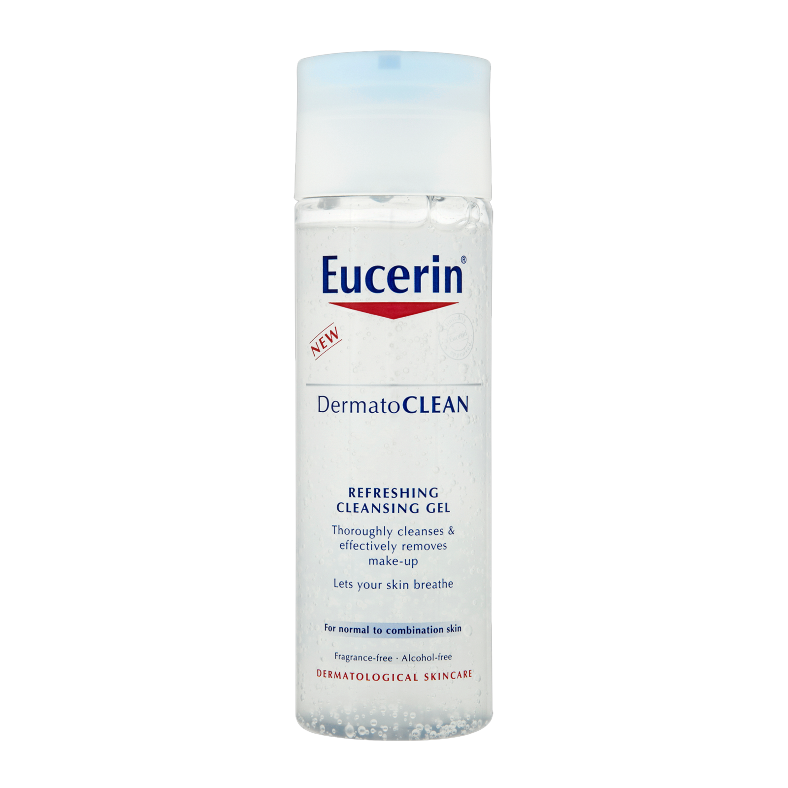 Gel rửa mặt cho da nhạy cảm Eucerin Dermato Clean Refeshing Cleansing Gel kết hợp các thành phần làm sạch da độc đáo và nhẹ nhàng từ thiên nhiên, giúp làm sạch bụi bẩn, các lớp trang điểm, bã nhờ đồng thời giữ được độ ẩm cân bằng tự nhiên của da, trả lại làn da tươi mát, không còn bóng nhờn. Trong đó, hoạt chất APG Complex giúp làm sạch nhẹ nhàng cho da, gluco-glycerol và axit hyaluronic sẽ cung cấp độ ẩm tự nhiên và giữ ẩm cho da, giúp da nhạy cảm, kích ứng tươi mát, dịu nhẹ và mịn màng.
