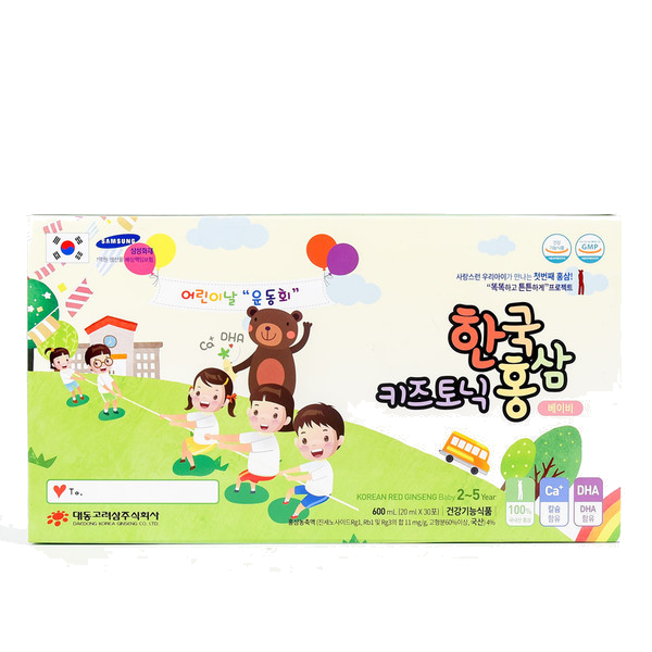 Daedong Korean Red Ginseng Baby là loại hồng sâm được đặc chế dành riêng cho trẻ nhỏ trong khoảng 2-5 tuổi. Với thành phần chính là chiết xuất hồng sâm nguyên chất chiếm đến 4%, kết hợp cùng chất xơ hòa tan fructooligosaccharide, chiết xuất quả lê, mật ong, nhung hươu nai, đương quy, rong biển, canxi, tinh dầu cá...