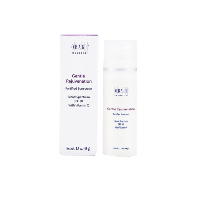 Kem chống nắng, làm trẻ da Obagi Gentle Rejuvenation Fortified Sunscreen SPF 30 ngăn chặn tia UVA, UVB xuyên thấu qua da, bổ sung vitamin C chống lão hóa, bảo vệ da khỏe mạnh, săn chắc và trẻ hóa từ bên trong.