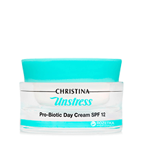 Kem dưỡng ban ngày Christina Unstress Pro-Biotic Day Cream SPF12 là sản phẩm nằm trong dòng sản phẩm Unstress của thương hiệu Christina. Dòng sản phẩm đã được thương hiệu Christina sáng tạo ra với liệu pháp độc đáo giúp làm dịu làn da và ngăn ngừa sự kích ứng như viêm da, ngứa ngáy… Các sản phẩm của dòng Unstress luôn hiểu rõ những tác động từ môi trường bên ngoài ảnh hưởng tới làn da và các ảnh hưởng từ bên trong. Và đặc biệt được cấu tạo với các thành phần chứa hoạt tính sinh học mang đến hiệu quả rõ rệt trong việc bảo vệ tế bào gốc và màng nhầy tế bào. Từ đó giúp tăng cường sức đề kháng cho làn da, ngăn chặn những tổn thương da và làm lành các tổn thương đã có, chống lại quá trình lão hóa diễn ra, cân bằng độ ẩm tự nhiên và phục hồi sự khỏe mạnh trẻ trung cho làn da.