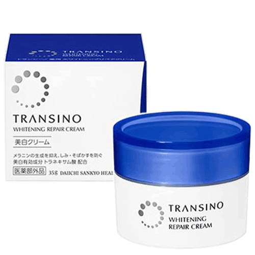 Kem làm trắng, tái tạo da Transino Whitening Repair Cream là một trong những sản phẩm nằm trong dòng đặc trị nám, tàn nhang và làm trắng da của thương hiệu Trasino, được Công ty dược Daiichi Sankyo Nhật Bản nghiên cứu và sản xuất. Kem chứa các thành phần chiết xuất từ thiên nhiên có tác dụng tái tạo, phục hồi làn da hư tổn và làm trắng da, tăng cường chức năng bảo vệ của lớp sừng, giảm thiểu hiện tượng mất nước.