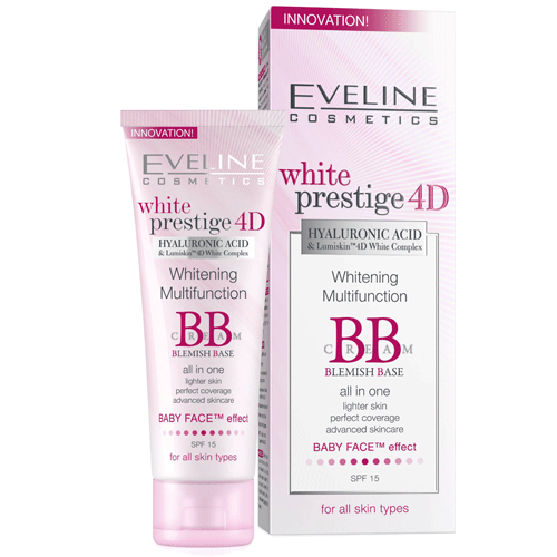 Blemish Balm hoặc BB Cream là một sản phẩm đa công dụng có thể đáp ứng nhu cầu trang điểm và chăm sóc da cùng lúc. Kem lót dưỡng trắng Eveline Cosmetics White Prestige 4D Whitening Multifunction BB Cream Blemish Base là sản phẩm ưu việt khi tích hợp được nhiều công năng, chỉ cần một bước đơn giản là làn da được chăm sóc toàn diện, vừa có tác dụng dưỡng trắng, vừa dưỡng ẩm, xoá nếp nhăn, che khuyết điểm và chống nắng hiệu quả nhất.