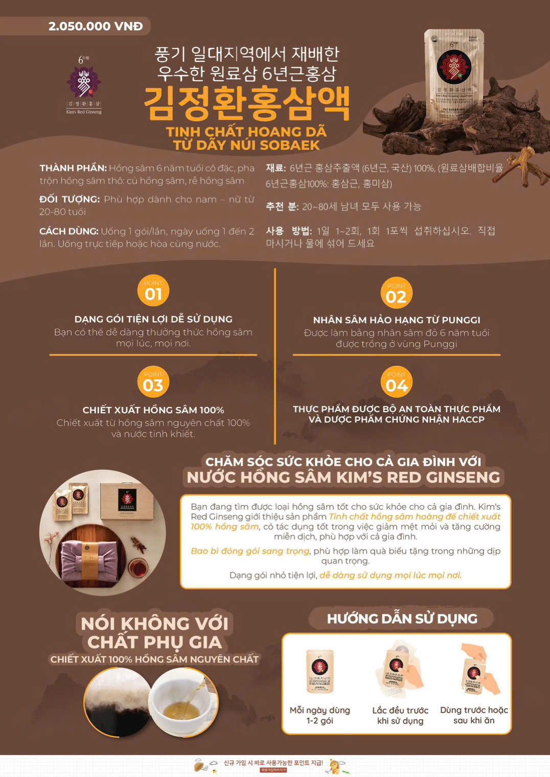 Công dụng Kim's Red Ginseng - Tinh chất Hồng Sâm Hoang Dã Dãy Núi Sobaek
