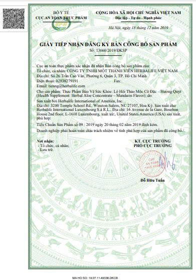 Số Xác Nhận Công Bố: 13660/2019/ĐKSP
