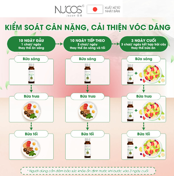 - 10 ngày tiếp theo giảm cân: mỗi ngày 2 chai thay thế bữa ăn sáng và tối