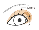 - Dùng đầu cọ lớn, lấy phấn mắt từ A đến C sau đó vuốt ngược lại từ C đến A, tản màu từ đuôi mắt đến hốc mắt. Sau đó tán ngược từ hốc mắt xuống về lại đuôi, rồi lướt vòng xuống chính giữa mí mắt dưới.