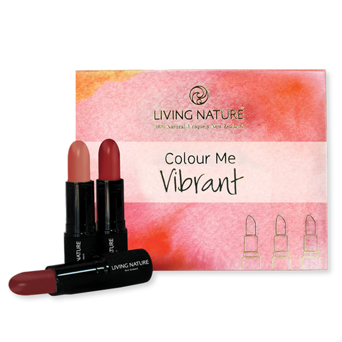 Living Nature Colour Me Vibrant là set quà tặng đặc biệt được mang tới bởi Living Nature cho đôi môi phái đẹp thêm phần quyến rũ, rực rỡ và cuốn hút. Được sản xuất và hoàn thiện một cách hoàn hảo, những thỏi son này còn giúp nuôi dưỡng và trẻ hóa đôi môi. Đặc biệt, sản phẩm không làm khô môi và phù hợp với hầu hết tông da. Set son môi Living Nature Colour Me Vibrant được gói khéo léo trong hộp quà gồm 3 sắc thái: Pure Passion, Wild Fire và Coral Sea. Đây là sản phẩm nằm trong dòng trang điểm cao cấp của Living Nauture, cho vẻ đẹp tự nhiên và an toàn.