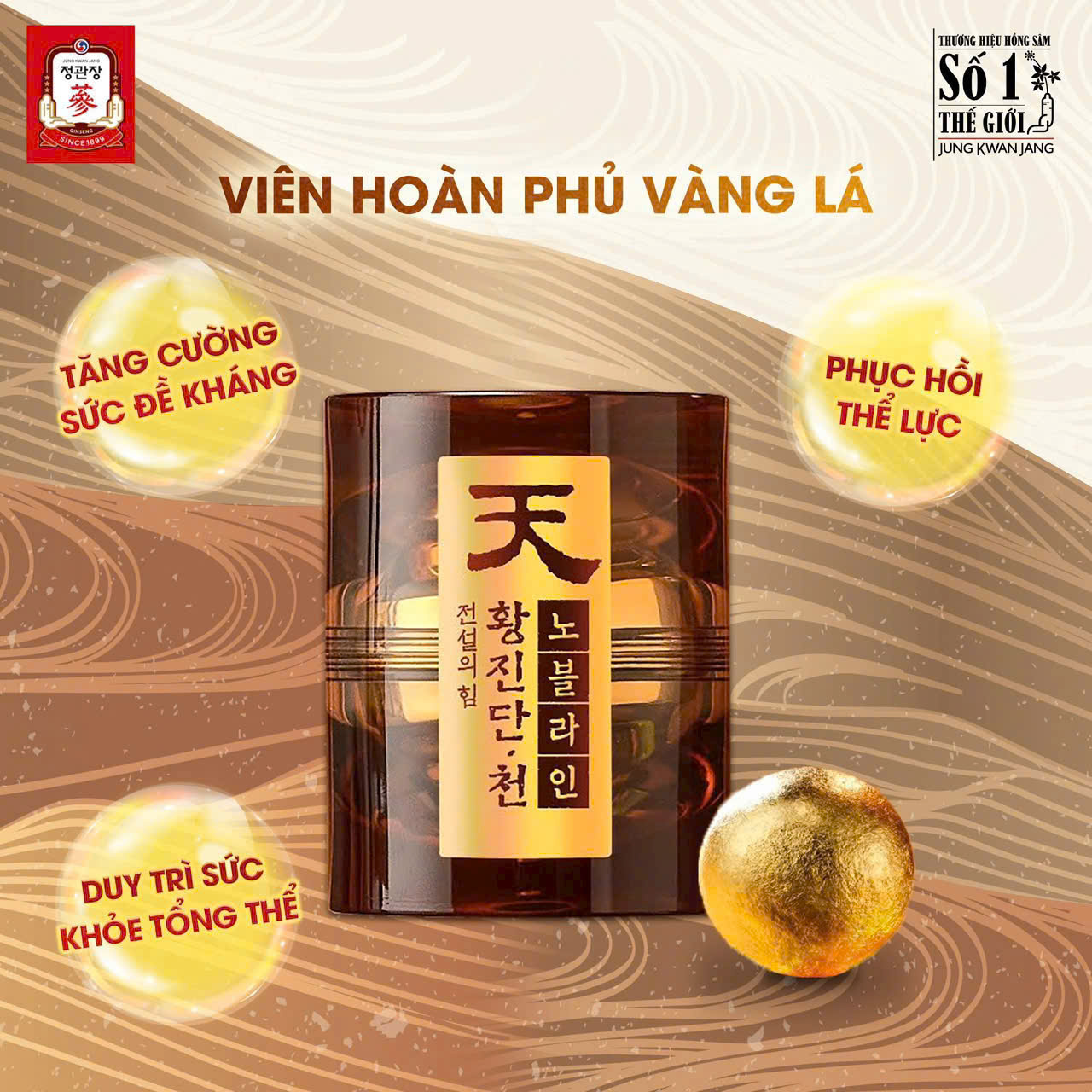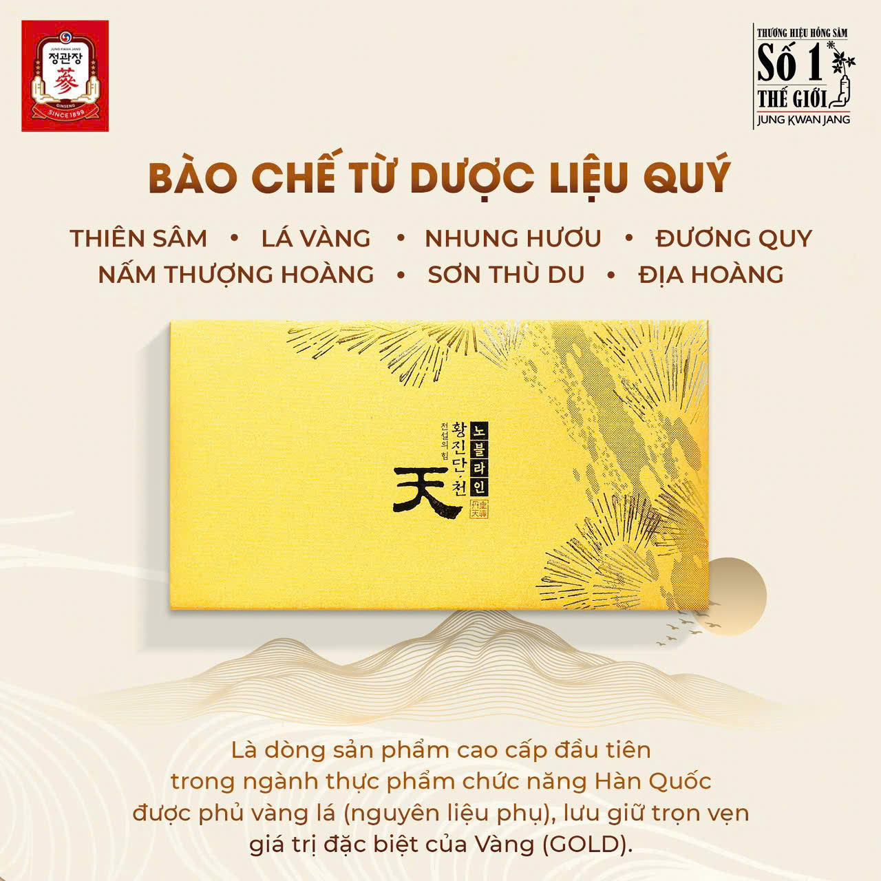 Là dòng sản phẩm cao cấp đầu tiên trong ngành thực phẩm chức năng Hàn Quốc được phủ vàng lá (nguyên liệu phụ), lưu giữ trọn vẹn giá trị đặc biệt của Vàng (GOLD).