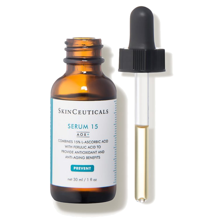 Tinh chất chống lão hóa da SkinCeuticals Prevent Serum 15 AOX + được các chuyên gia hàng đầu thương hiệu SkinCeuticals bào chế với công thức có chứa 15% axit L-ascorbic trong thành phần. Axit L-ascorbic chính là vitamin C, có khả năng chống oxy hóa cực mạnh để thanh lọc hoàn toàn gốc tự do, bảo vệ tế bào da để ngăn ngừa lão hóa da.