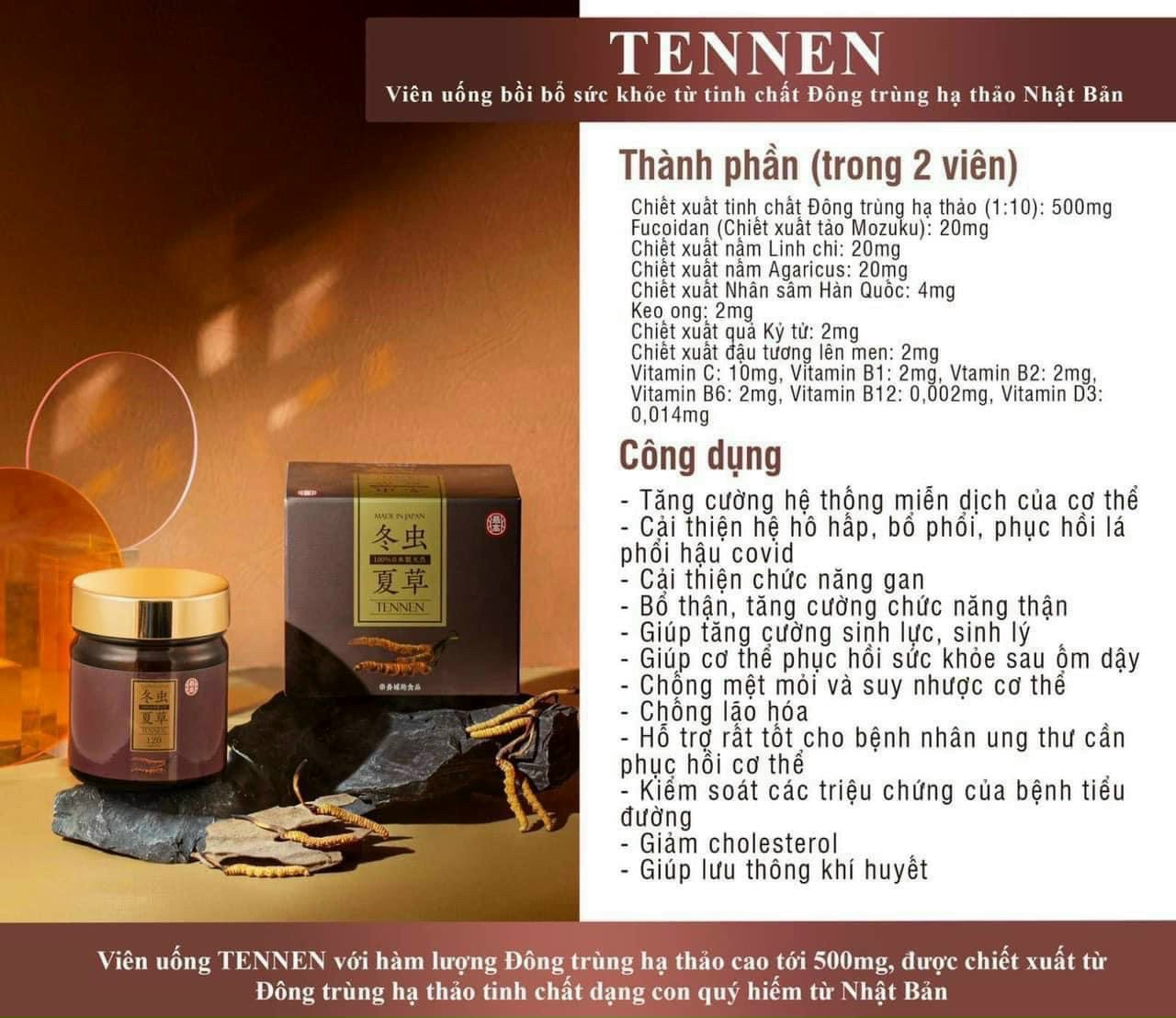 Công Dụng Viên đông trùng hạ thảo TENEN Nhật Bản