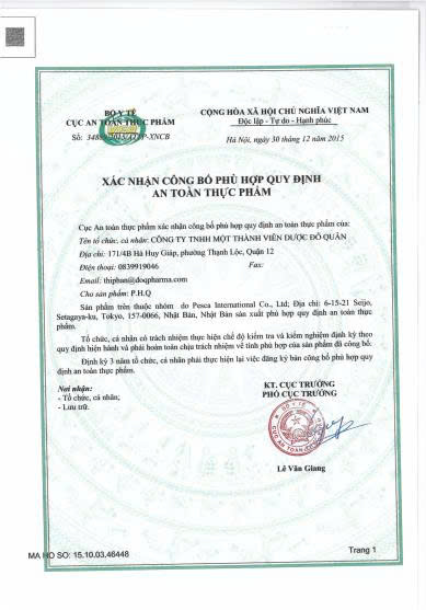 Giấy phép công bố SĐK:34889/2015/ATTP-XNCB