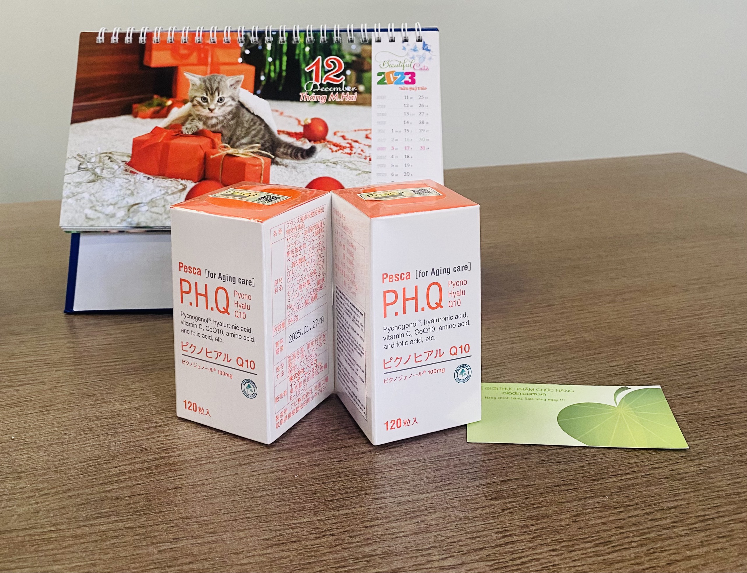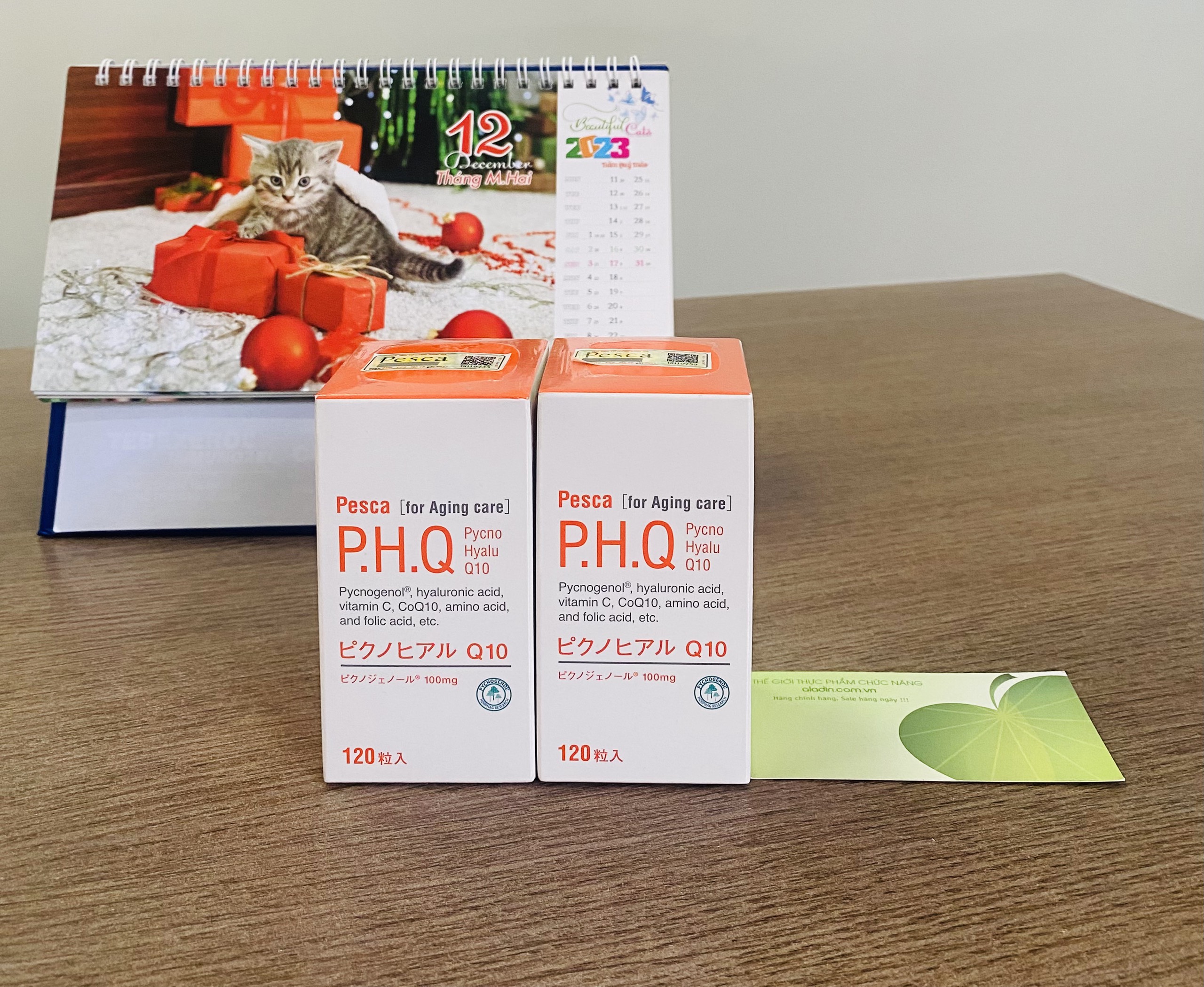 Viên uống làm đẹp da Pesca P.H.Q Pcyno Hyalu Q10 chứa thành phần chống oxy hoá mạnh pycnogenol giúp da sáng và mịn màng, giảm thiểu tác hại của tia UV, chống lão hoá, phòng ngừa các chứng bệnh do tập quán sinh hoạt…