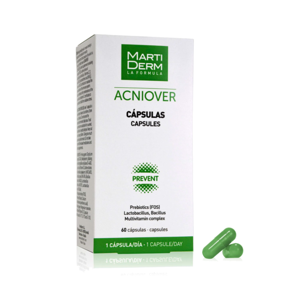 Viên uống ngăn ngừa mụn MartiDerm Acniover Capsules chứa lợi khuẩn prebiotics và probiotics, sẽ cân bằng da, giúp da khỏe mạnh, ngăn chặn các vấn đề về da. Đồng thời, viên uống còn củng cố hàng rào bảo vệ sinh học của da, ngăn chặn các tác động xấu từ ngoại cảnh tác động, giảm tổn thương trên da.