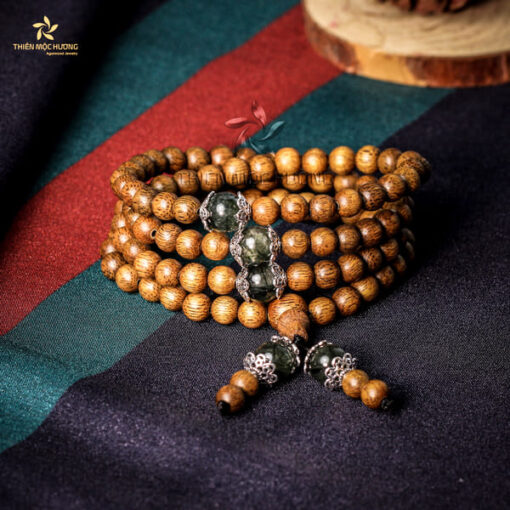 Vòng Tay Trầm Hương 108 Hạt Ngọc Bảo Charm Thạch Anh tóc xanh
