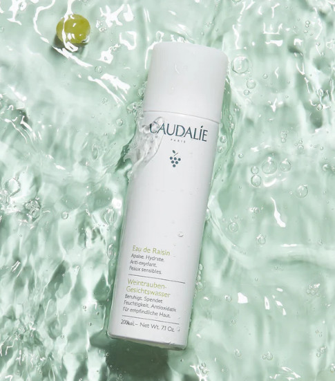 Caudalie Grape Water Sản phẩm dạng xịt phun sương với chiết xuất từ những trái nho hữu cơ được thu hoạch trên chính vườn nho của Caudalie. Grape Water đã trở thành một sản phẩm được yêu thích của Caudalie vì tính đa dụng đầy kì diệu - sản phẩm này có thể giúp làm dịu, đem lại vẻ tươi mới và giữ ẩm cho làn da cả ngày dài.