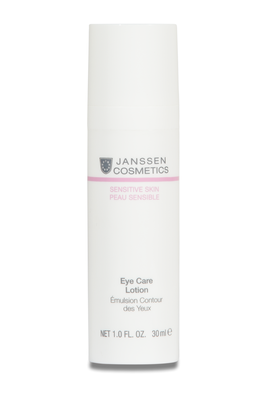 Janssen Sensitive Skin Eye Care Lotion với công thức có chứa chiết xuất rau má đầm lầy châu Á, cây đậu chổi, cây cúc xuxi, hạt dẻ ngựa và rễ cây cam thảo, cardiospermum halicacabum... Sẽ ngăn ngừa và làm giảm nhanh hiện tượng thâm quầng và sậm màu danh quanh mắt, trả lại làn da vùng mắt tươi sáng và trắng mịn rạng ngời. Theo kết quả khảo sát trên nhóm người dùng sản phẩm thì hiệu quả giảm quầng thâm vùng mắt đáng kể đến 64%.