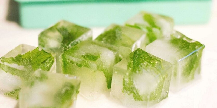 Lấy nước trà xanh tạo thành các viên đá nhỏ. Sau khi vệ sinh da sạch sẽ, lấy khăn dày quấn quanh viên đá chè xanh và chườm lên da theo hình vòng tròn khoảng 10 phút. Thực hiện đều đặn 1-2 lần/tuần.