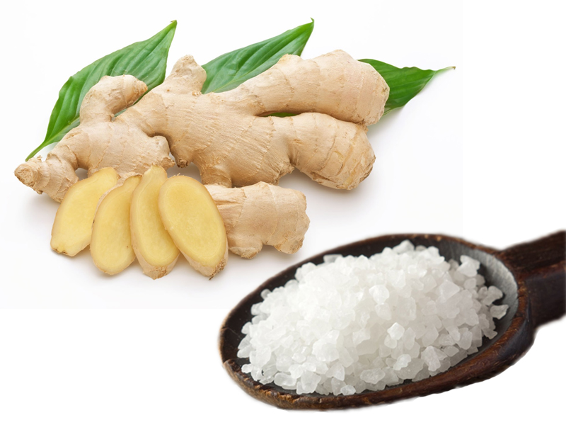 Các bạn hãy chọn củ gừng nhỏ mang đi rửa sạch và giã nát, cho thêm 1 muỗng muối ăn vào và trộn đều. Rửa sạch chân và lau khô, dùng hỗn hợp muối và gừng massage nhẹ nhàng lên toàn bộ đôi bàn chân trong khoảng 10-15 phút thì rửa lại bằng nước ấm và lau khô.