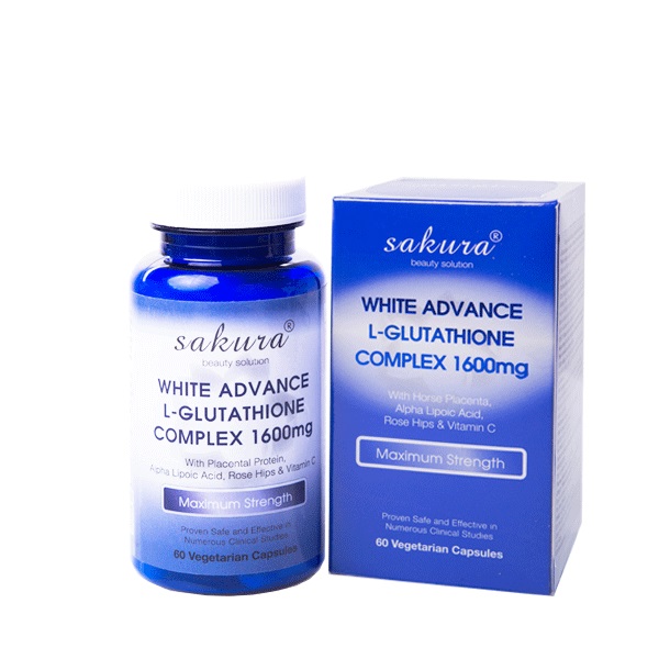 Sakura White Advance L-Glutathione Complex được bào chế với công thức có sự kết hợp giữa L-Glutathione reduced, alpha lipoic acid, nhau thai ngựa (placenta protein extract), vitamin C (chiết xuất hoa hồng)... Sẽ ức chế tăng sinh tế bào melanocyte và sự tổng hợp melanin để ngăn ngừa và xoá mờ các đốm đen, xỉn màu, nám, tàn nhang và đồi mồi... trên da hiệu quả. Đồng thời, chống oxy hoá mạnh mẽ để chống lại các gốc tự do, bảo vệ tế bào để làm chậm quá trình lão hoá, ngăn chặn nám và tàn nhang mới hình thành, bảo vệ làn da sáng khỏe và trẻ trung. Đặc biệt, sự kết hợp này còn kích thích sản sinh collagen và elastin, giúp da căng nảy, bóng khỏe, xóa mờ nếp nhăn nhanh chóng.