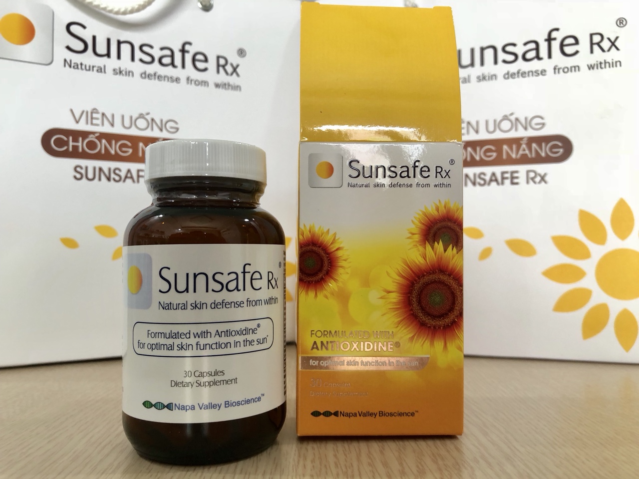 Viên uống chống nắng Sunsafe RX là sả phẩm của thương hiệu SUNSAFE RX đến từ Mỹ. Sản phẩm được bào chế nên từ công thức có chứa các chiết xuất thiên nhiên, được kiểm định và đánh giá lâm sàng kĩ lưỡng, đảm bảo an toàn cho làn da và sức khỏe khi dùng.